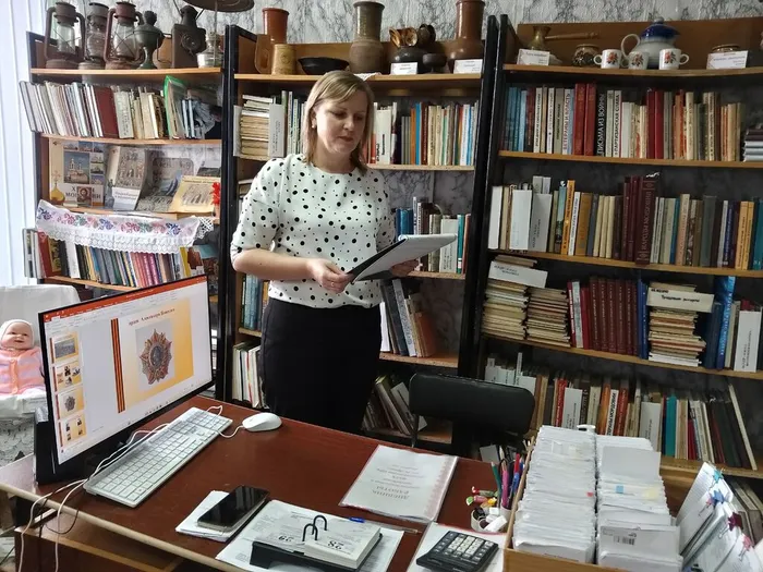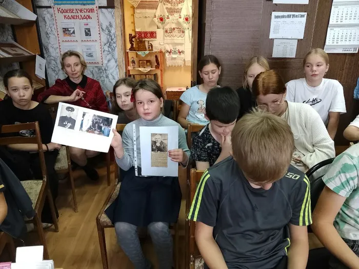 В качестве наглядного материала аудитории были представлены орденские книжки Д.В. Борисова и фотографии, хранящиеся в музее центральной библиотеки.