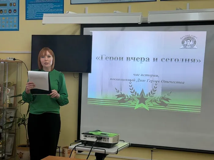 В преддверии Дня Героев Отечества сотрудники детского отдела в рамках программы «Пушкинская карта» провели исторический час «Герои вчера и сегодня», посвященный героизму наших соотечественников. Особыми гостями мероприятия стали действующий участник СВО, ветеран боевых действий Косырев Фёдор Вячеславович, социальный координатор филиала «Фонда защитников Отечества» Митяйкина Е. Н. и учащиеся 9 «Б» класса МБОУ «Ромодановская СОШ № 1» (классный руководитель Кадомцева С. Ю.).