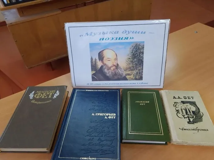 На выставке были представлены книги Афанасия Фета из фонда библиотеки.