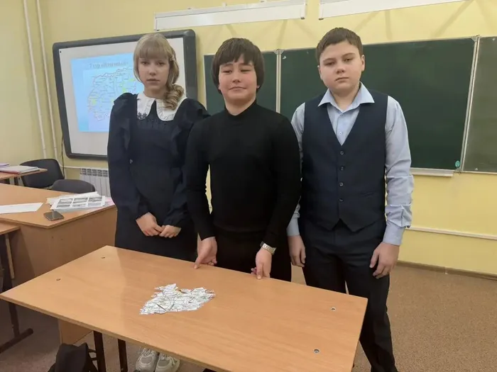 Затем ребята ответили на вопросы викторины «А знаешь ли ты свой край?». За правильные ответы они получали пазлы, из которых в конце мероприятия собрали изображение карты Ромодановского района.