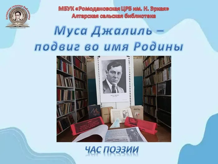 В преддверии этого дня 13 февраля в Алтарской сельской библиотеке в рамках программы «Пушкинская карта» прошёл час поэзии «Муса Джалиль - подвиг во имя Родины».