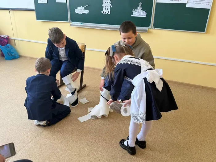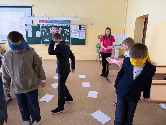 Школьники участвовали в весёлых испытаниях: «Солдат умом богат», «Собери волю в кулак», «Шифровальщик», «Попади в цель», «Разведка донесла», «Помоги саперу», «Намотай портянки».