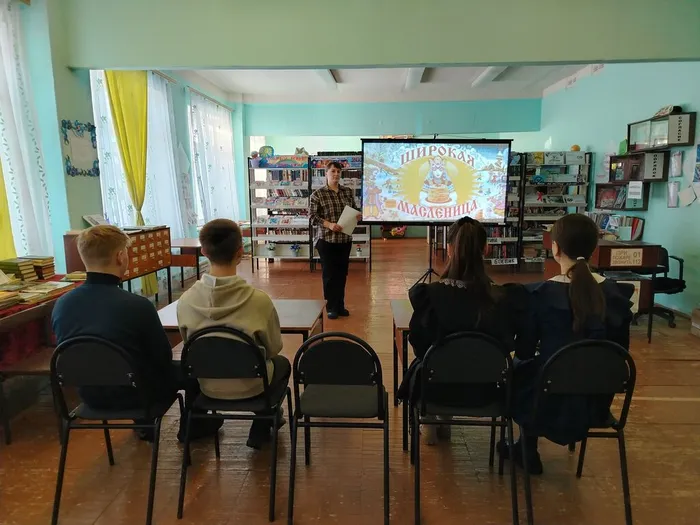 Библиотекарь познакомила присутствующих с традициями и обычаями одного из самых веселых народных праздников. Гости узнали, что принято делать в каждый из 7 дней масленичной недели, почему масленичный блин является не просто праздничным угощением, а символом золотого солнца. Далее прослушали рассказ М. Зощенко «Веселая масленица».