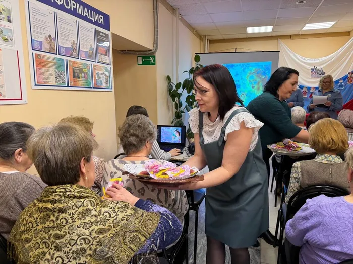 Е. Н. Митяйкина поздравила присутствующих женщин с наступающим праздником Весны, пожелав всем здоровья и мирного неба над головой.