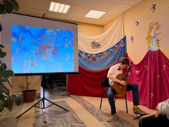 Незабываемым для женщин стал музыкальный подарок в исполнении воспитанника детской школы искусств Евгения Жадяева.