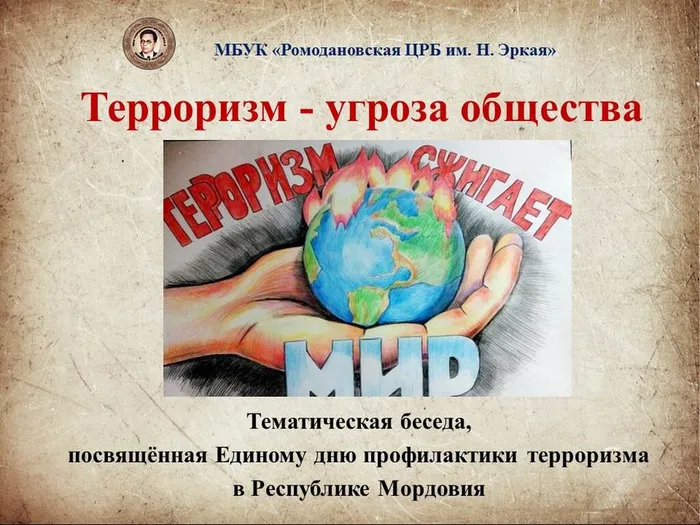16 марта в Единый день профилактики терроризма в Республике Мордовия, установленный решением региональной Антитеррористической комиссии, возглавляемой Главой РМ Артёмом Здуновым, при координации АТК в Ромодановском муниципальном районе в МБОУ «Ромодановская СОШ №3» для учеников 6 класса сотрудники сектора искусства и краеведения провели тематическую беседу «Терроризм – угроза общества». Тема дня «Мы вместе за жизнь без террора!».