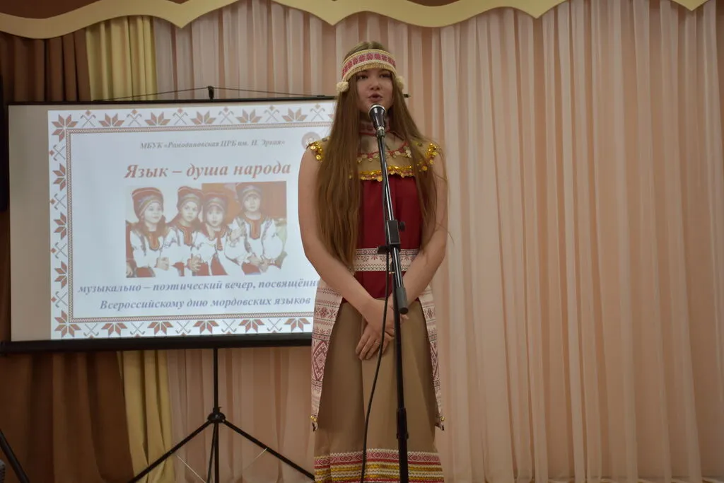 13 апреля, в преддверии Всероссийского дня мордовских языков, сотрудники сектора искусства и краеведения Ромодановской центральной районной библиотеки в рамках программы «Пушкинская карта» провели музыкально-поэтический вечер «Язык – душа народа».
