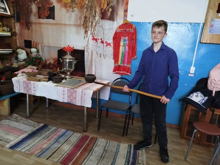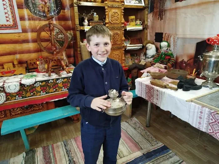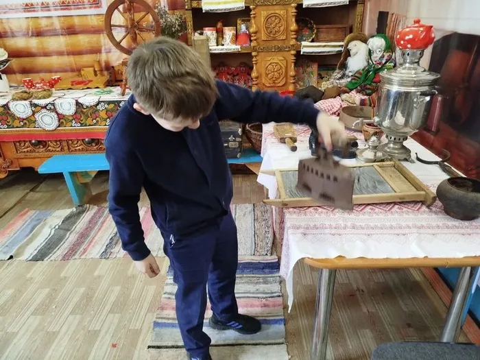 Ребята попробовали приподнять тяжелый старинный утюг, представить, как пользовались прялкой, узнали о том, что коромысло изготавливали из липы, осины, ивы – древесина, которых отличается легкостью, гибкостью, упругостью. Особое внимание уделили сердцу избы - печке.