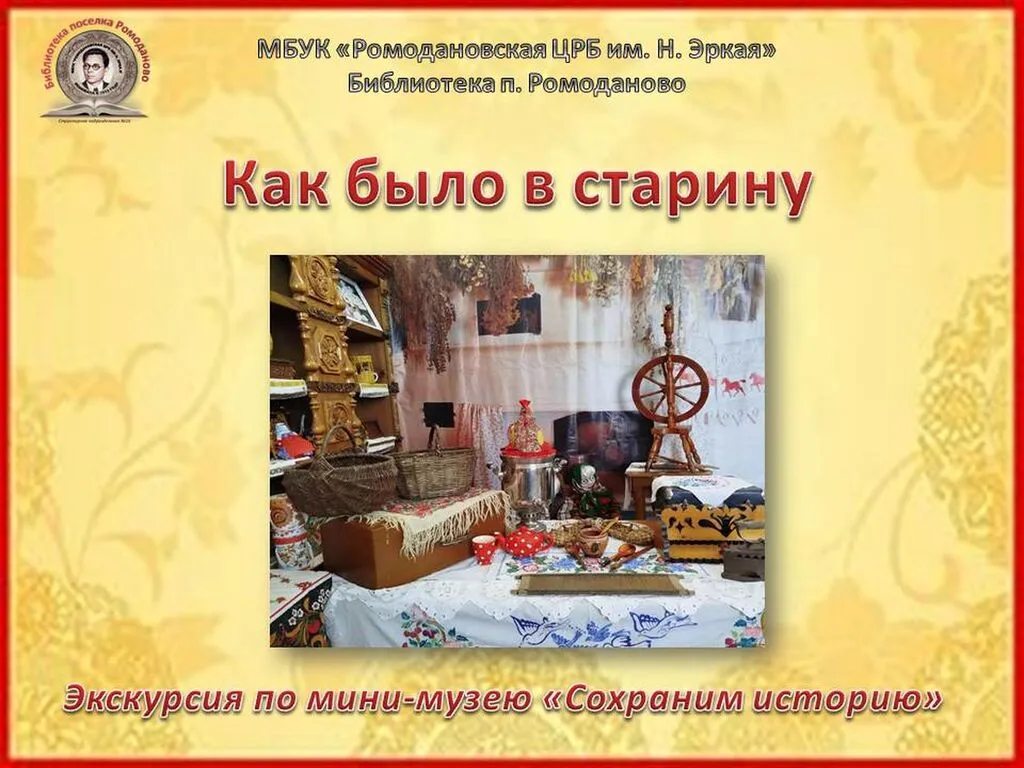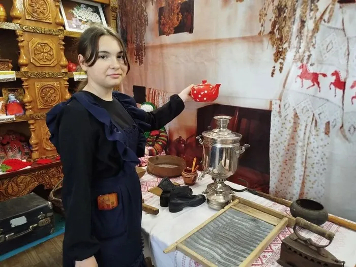 Сегодня в рамках программы «Пушкинская карта» в библиотеке п. Ромоданово с учащимися МБОУ «Ромодановская СОШ №2» прошла экскурсия по мини - музею под названием «Сохраним историю», где присутствующие познакомились с предметы крестьянского быта: старинный угольный утюг, вышитые полотенца и скатерти, самовар, лапти, прялка, туеса, ухват, деревянные ложки и др. Участники мероприятия смогли рассмотреть и прикоснуться к истории жизни бабушек и дедушек, узнать историю вещей и кому они принадлежали ранее. С удовольствием рассматривали посуду, слушали рассказ как жили раньше наши предки.
