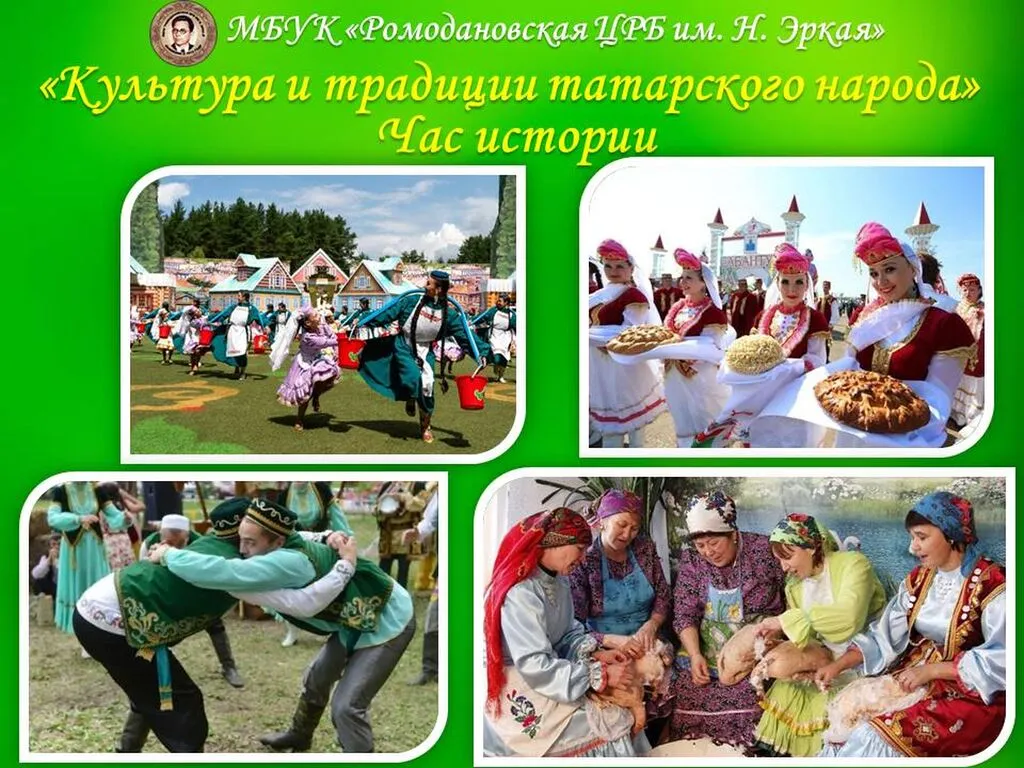 Ведущие рассказали о национальном татарском костюме, традиционной татарской кухне, мусульманских праздниках. Школьники поучаствовали в народной татарской игре «Одень тюбетейку». Ребята с энтузиазмом отгадывали татарские загадки-головоломки, которые отличаются от загадок других народом своей метафоричностью и эмоциональностью. В викторине «Сложи правильно пословицу» учащиеся собирали татарские пословицы, которые сквозь тысячелетия донесли до нас народную мудрость.